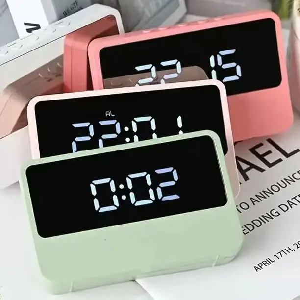 Design Best New Style Dual Powered for Bedroom Office Table Large Display Electronic Digital LED Mirror Alarm Clock