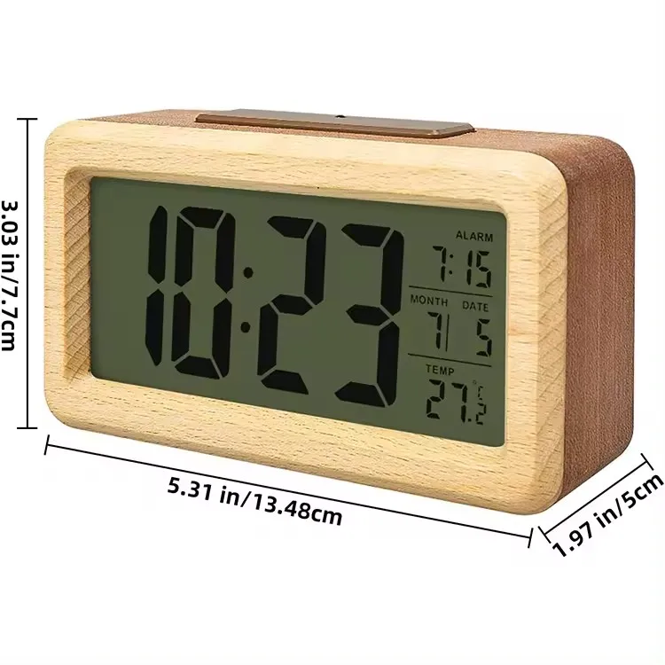 Eco-friendly Wooden Material Made Specifition Having a Sense of Technology Small Digital Backlight Alarm Table Wooden Clock