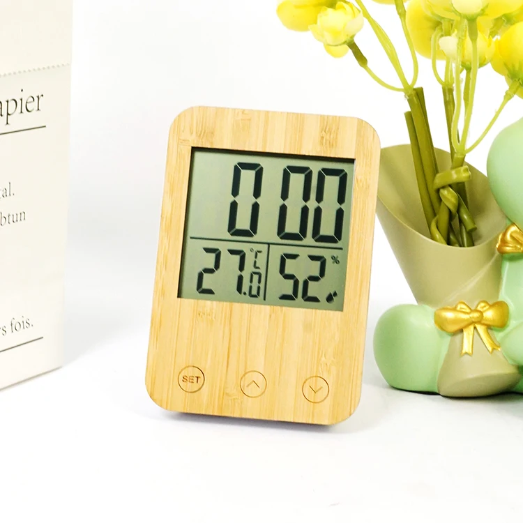 Indoor LCD Electronic Bamboo Temperature Humidity Meter Digital Thermometer Hygrometer Weather Station Alarm Clock