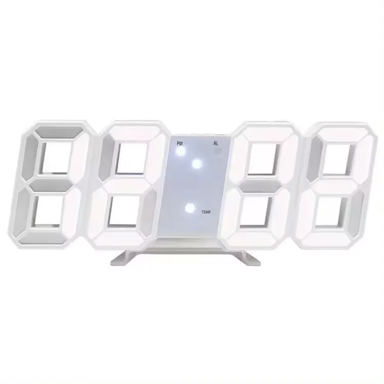 Modern Digital 3D White LED Wall Alarm Clock Table Alarm Nightlight Wall Clock for Home Living Room Decoration