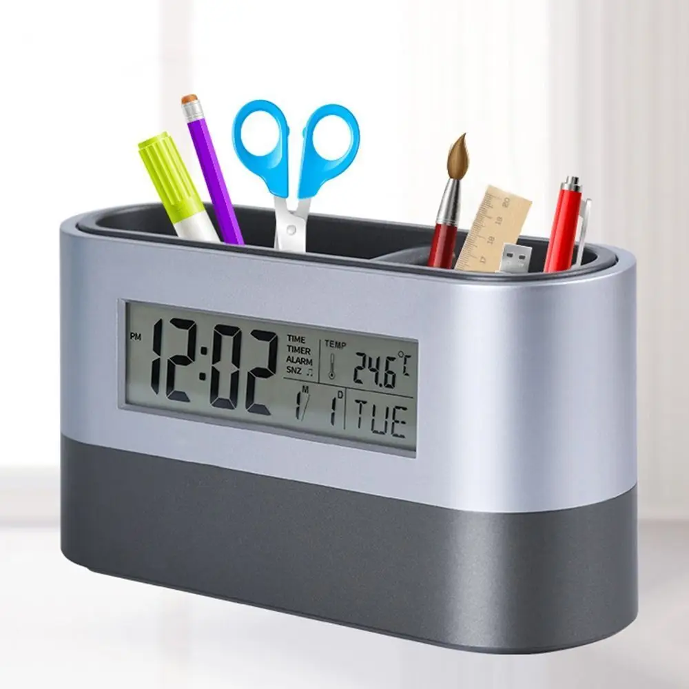 Promotional Gift Electronic Digital Alarm Pen Holder Clock With Gadget Storage Box Desktop Display